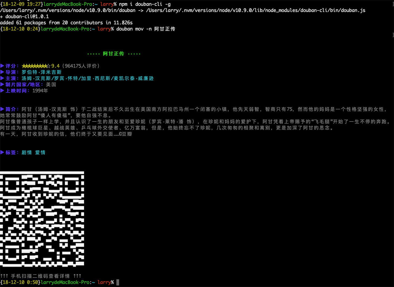 一个基于豆瓣v2 API查书和电影的命令行工具,对我自己来说还挺实用的额……