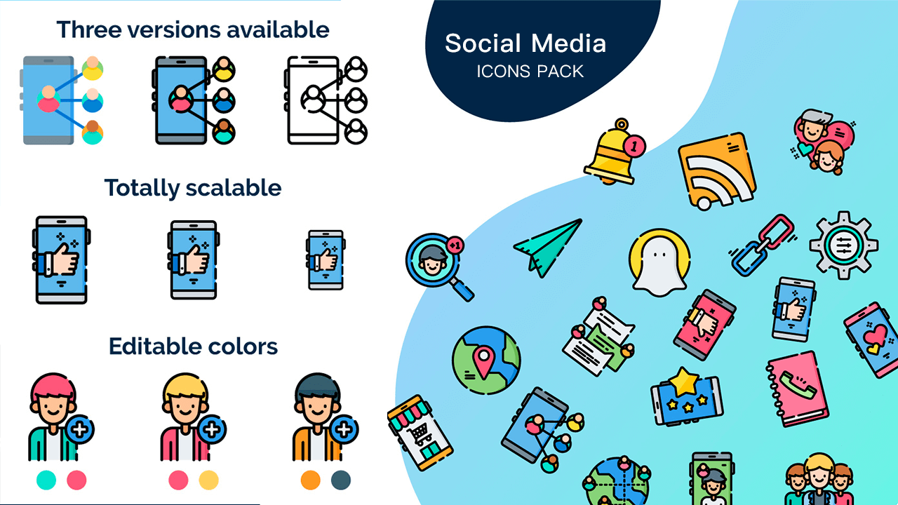 这套社交图标合集有3个不同风格版本——线性、面型、线面结合型,文件格式有 .png 和 .svg 两种,满足你对社交媒体项目将人和信息联系起来的一切需求。