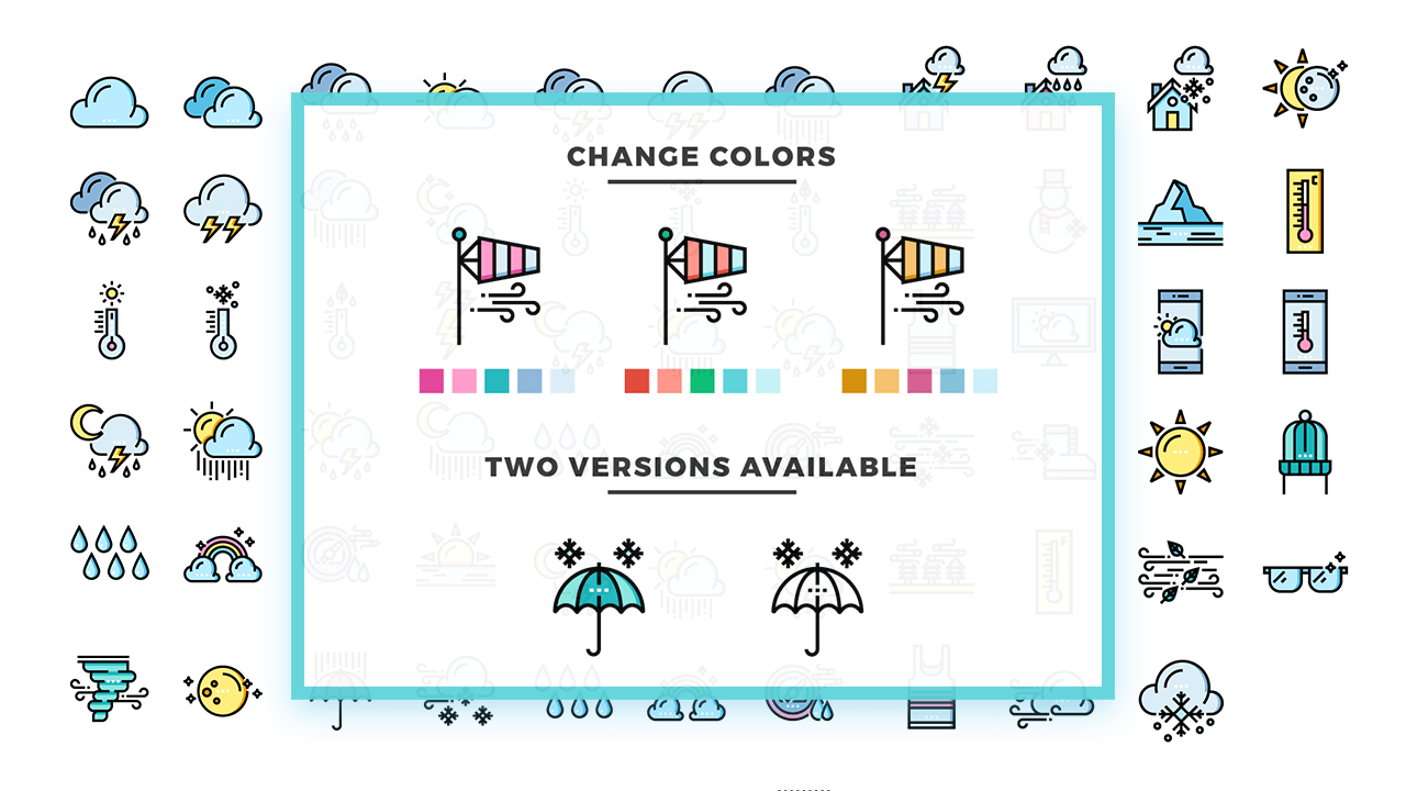 天气是我们经常讨论到的话题,而且在很多应用中都会用到,因此收藏一套满意的天气图标就显得尤为必要。这套图标合集包含线性图标和线面结合图标两种风格,基本型直观优美、色彩舒适和谐,相信你一定喜欢。