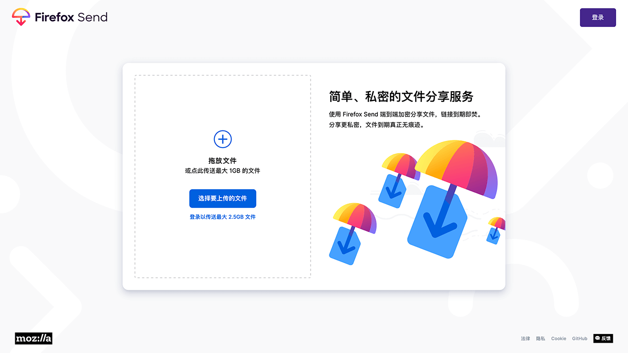 今天要给大家分享的是一个文件分享工具——Firefox Send,这个工具是由我们所熟知的Firefox火狐浏览器所属公司Mozilla推出的,一个开源私密文件分享服务工具,一起来看一下。