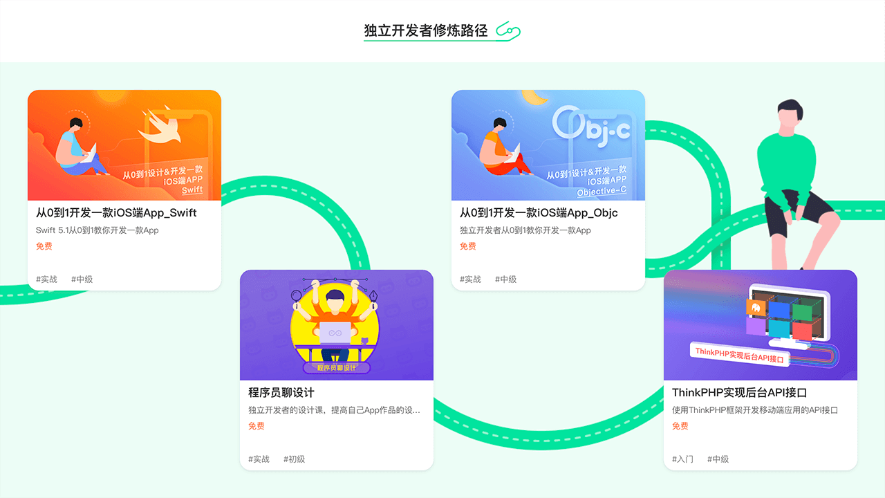 2. 独立开发者修炼路径,经常有用户问我,如何才能成为独立开发者,我应该如何系统完善的去学习拓展,现在我规划了一条独立开发者学习路径,有需要的可以放心入手。