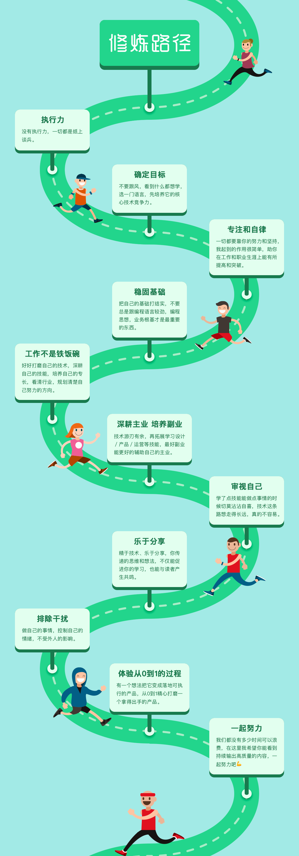 谈到独立开发者的修炼路径,每个人的人生就是一种修炼,按照你自己的节奏慢慢来就好,不要看到什么都想学,先把最核心的技术竞争力培养起来,比你学一堆乱七八糟的技术要重要的多,下面这张图是我大概总结的修炼路径,仅供参考。