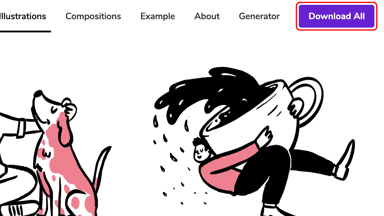 此外,在网站导航栏的最右侧还提供了下载所有插画素材的入口「Download All」下载全部按钮,一键点击即可下载所有插画资源。