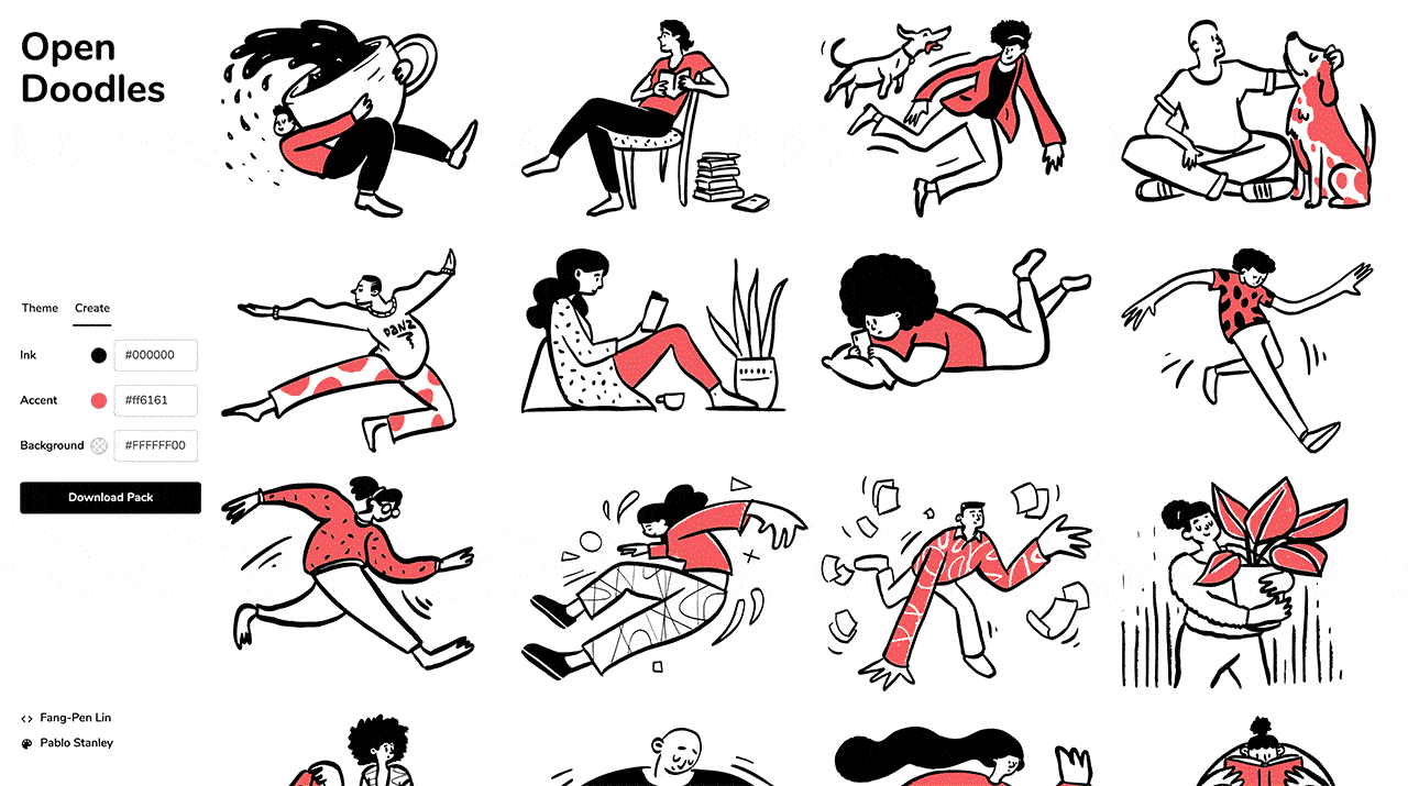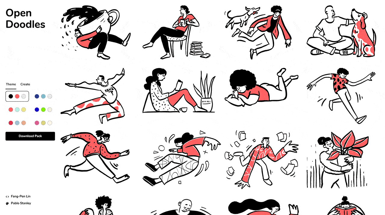 大家好,我是独立开发者Larry~今天给大家分享的是来自墨西哥设计师 Pablo Stanley 的最新免费插画资源——Open Doodles.