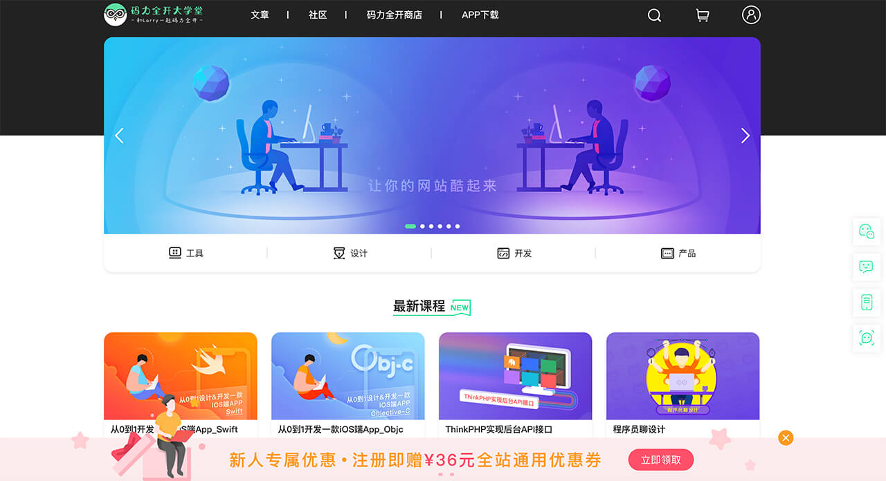 码力全开大学堂7月中旬正式上线开始内测,一直不断的在优化改进,目前服务号和邮件支持课程提醒功能,从此学习课程,快人一步,现在很大一部分的精力都放在了录制剪辑视频上,希望年前可以完成大部分课程的录制。