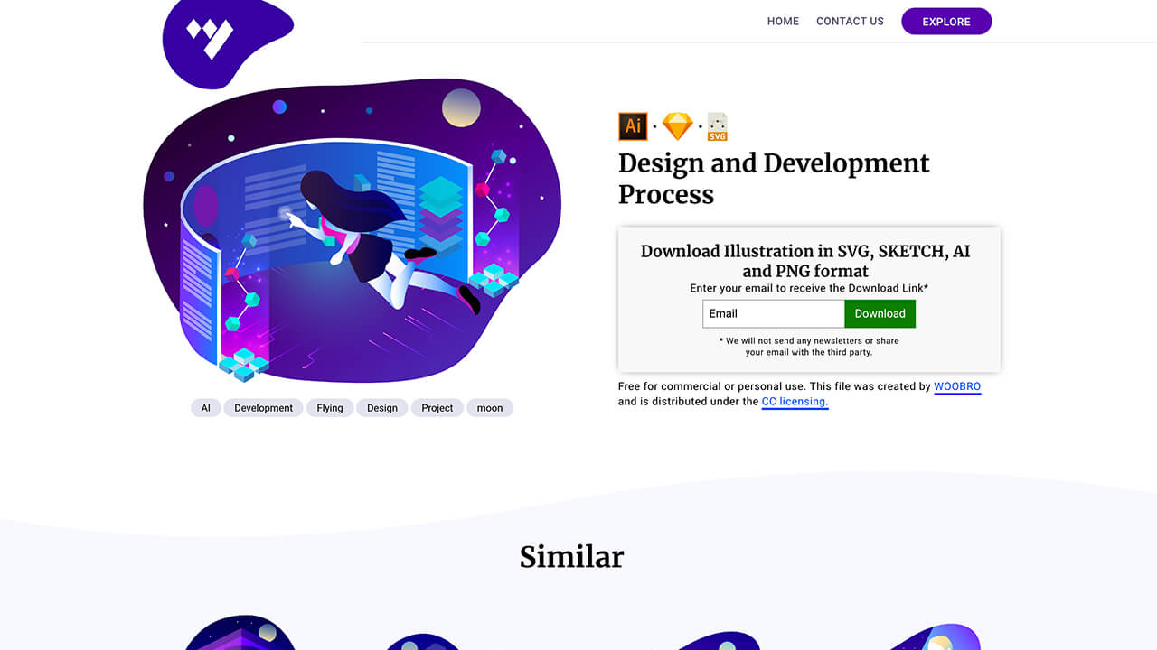 我们把鼠标移动到对应的插画图上,即可免费下载SVG、Sketch、AI格式的插画素材。