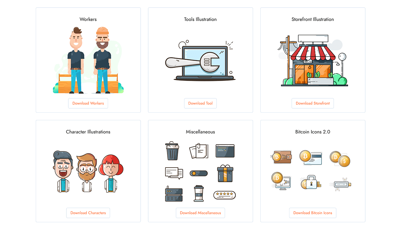 无需注册,点击每个插画或图标素材下的下载按钮即可免费下载,没有门槛限制,非常方便。