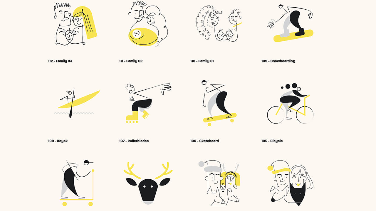 这里还提供了其它元素的抽象插画,比如旱冰鞋、滑板、自行车等等。