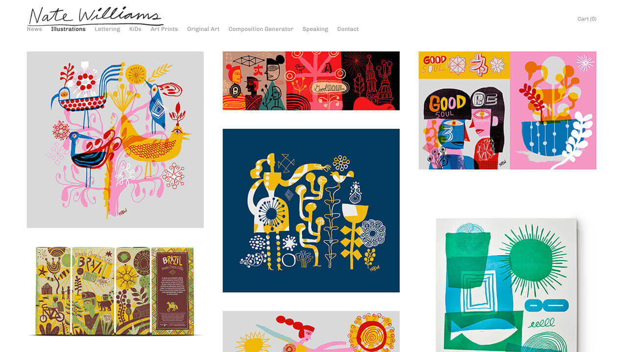 这是一个聚集优秀插画家作品的网站,Nate Williams 是美国西部的一位艺术设计总监,他为杂志、书本、包装、广告和产品设计插画和手绘字体,他的个人网站n8w记录了很多作品的灵感和实现过程。