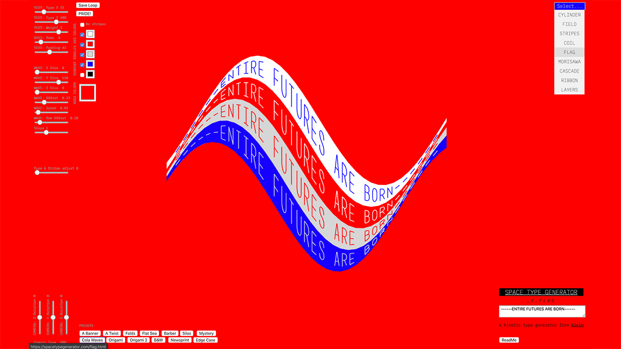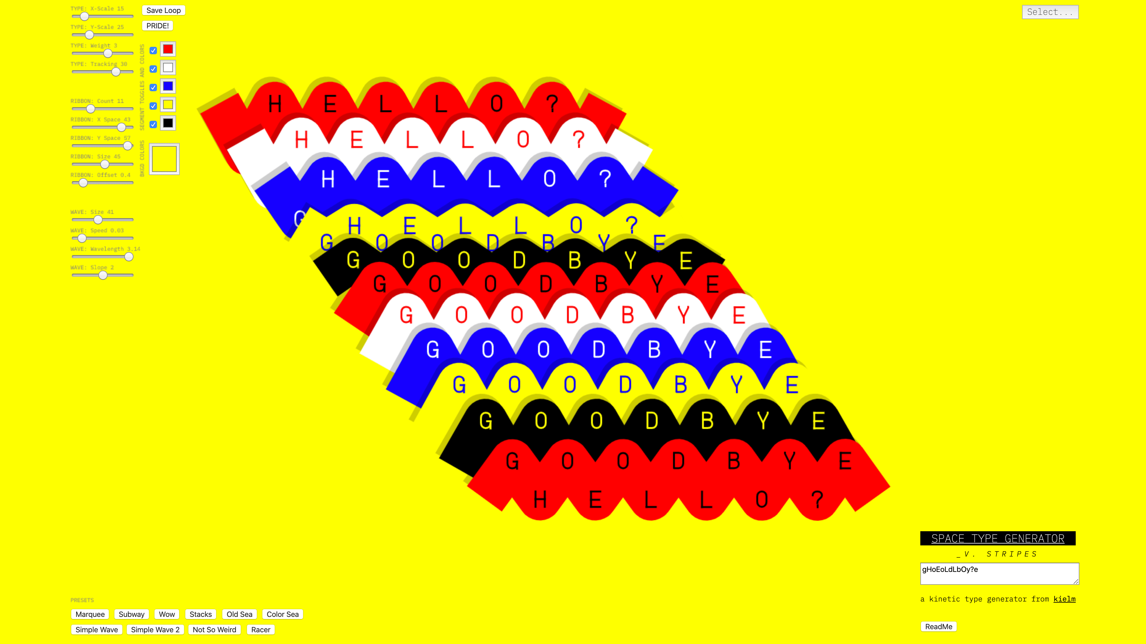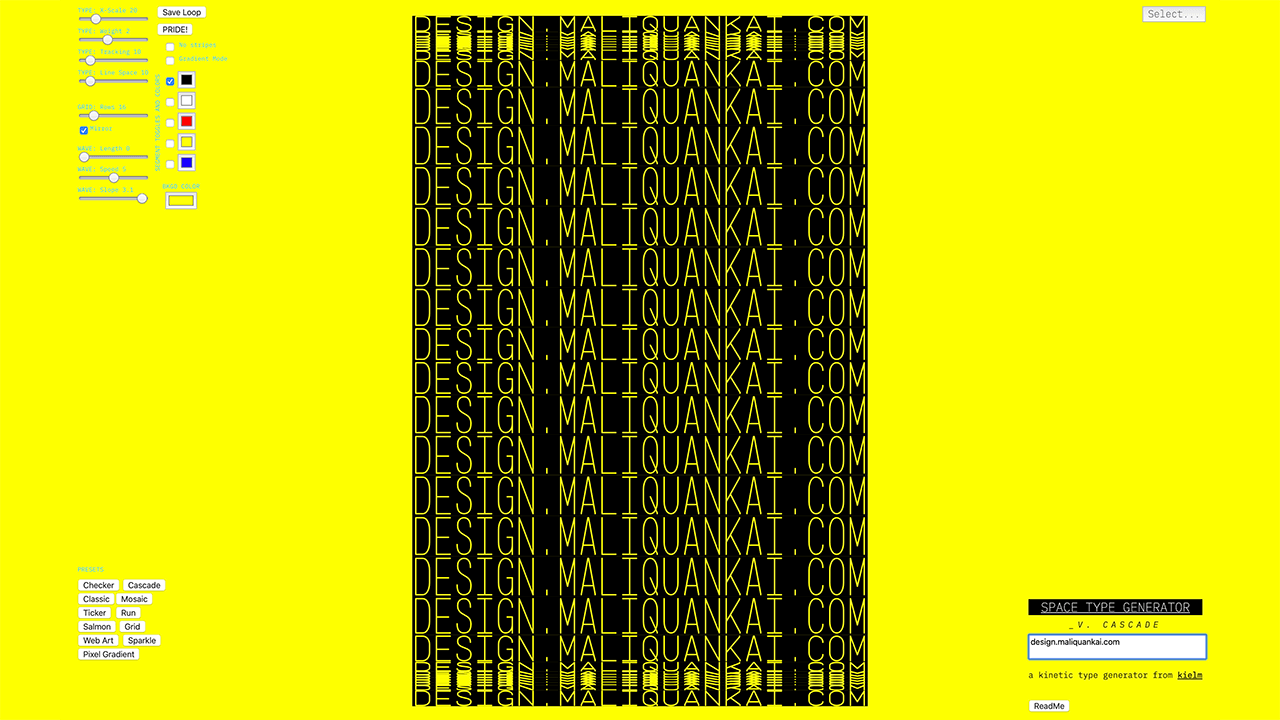 大家好,我是独立开发者Larry~今天给大家推荐一个非常强大的文字效果生成器Space Type Generator,你只需要输入文字,它就会自动生成各种各样的动效,你也可以根据想法调整参数,效果惊艳。
