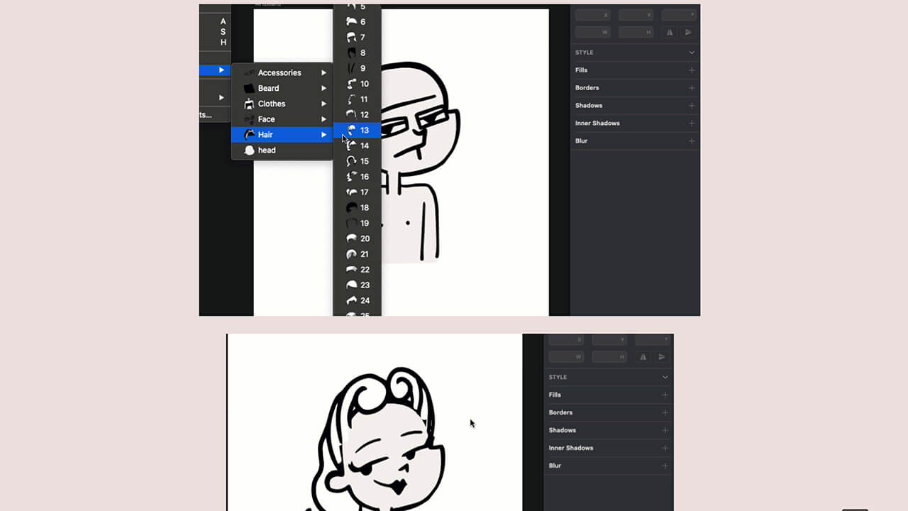 把这些素材拖到Sketch里,可以很方便的修改人物的每个部分,包括填色、修改身体比例大小、面部特征等。