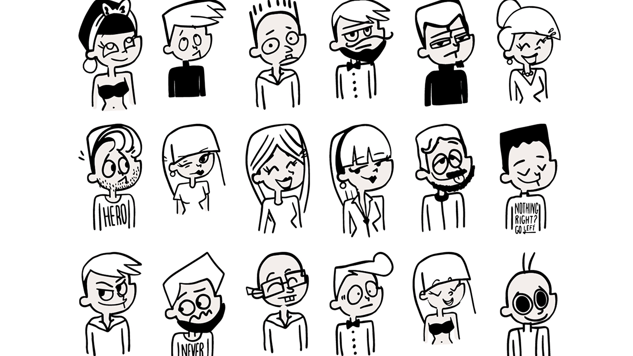 这里提供了50多个制作好的黑白色调人物形象,面部表情多样,可以根据自己的需求选择。