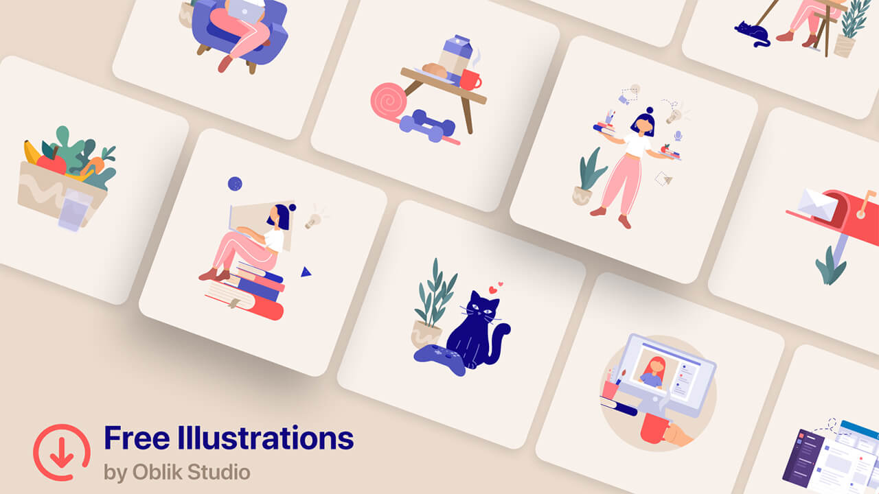 超过25种SVG、PNG、Figma和AI格式的矢量插图,感谢Oblik Studio分享此免费赠品。