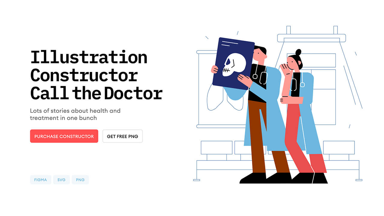 打开网站,可以看到一些关于健康和医疗的故事插画,提供了购买和免费下载的按钮,支持SVG和PNG格式。