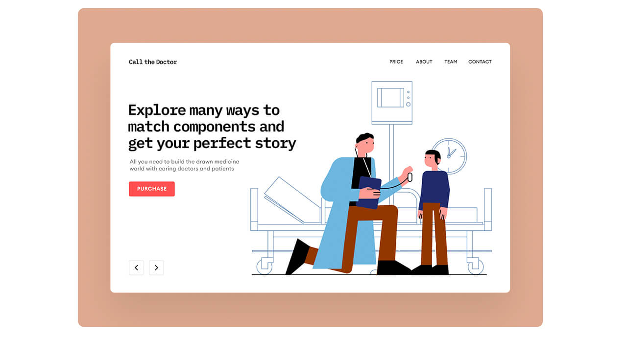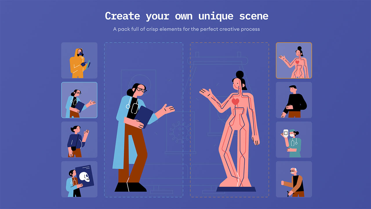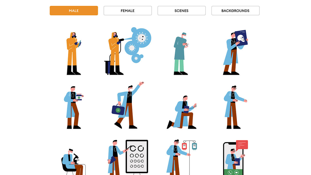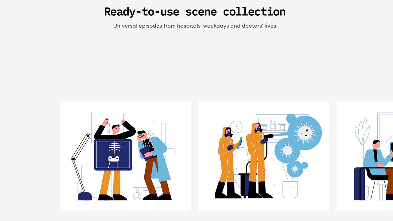 这里还提供了一些即用型场景集合,大部分的场景插画都是医院工作日和医生生活中的普遍事件。
