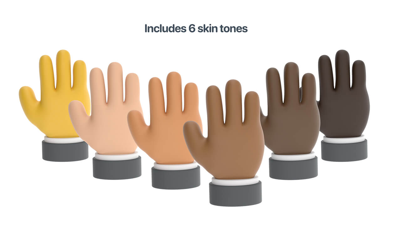 它提供了6种不同肤色的手势,可以根据自己的需求选择合适的手势肤色。
