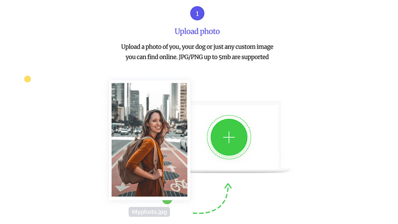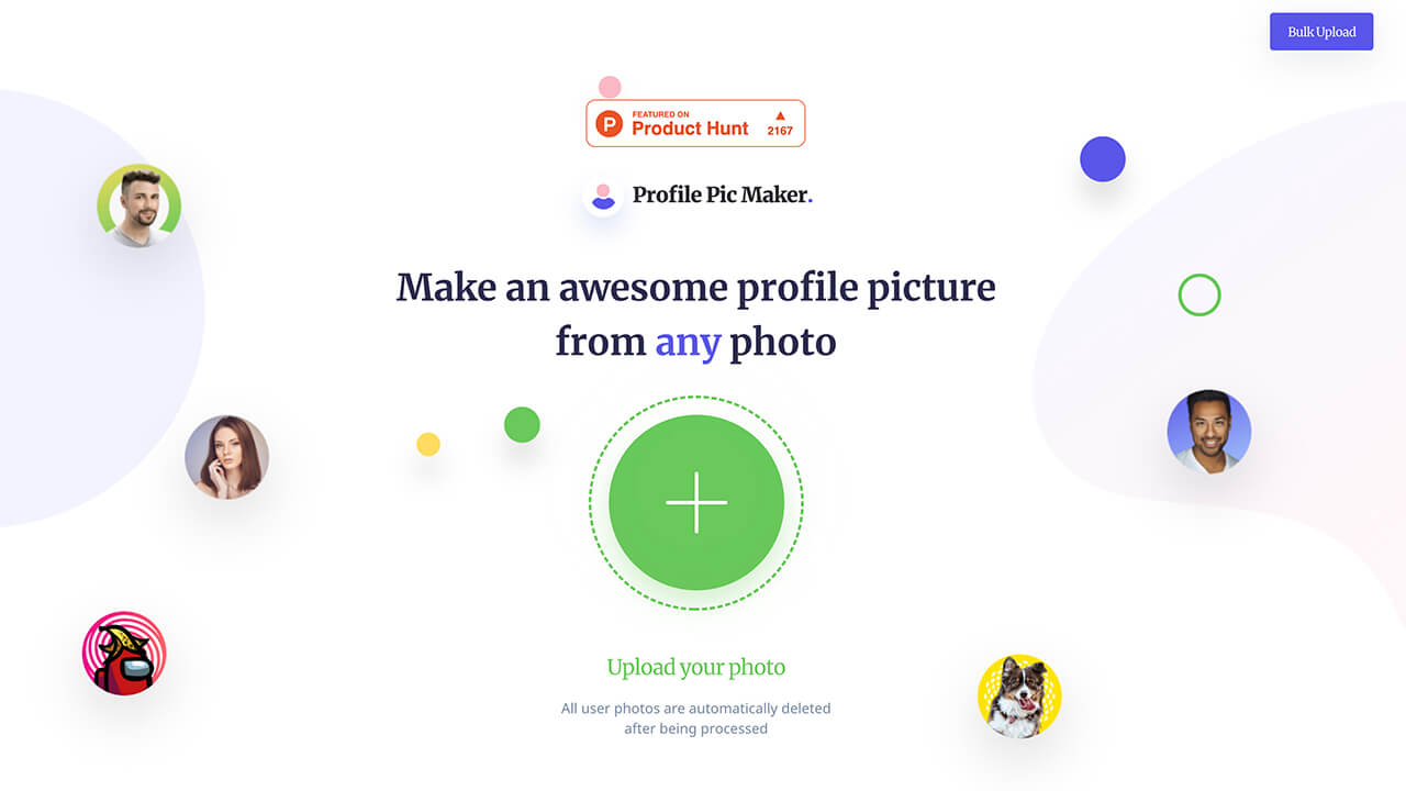 打开网站,可以看到大标题上传一张你的照片做一个出色的个人资料图片,你上传的照片通过AI技术处理后会自动删除。