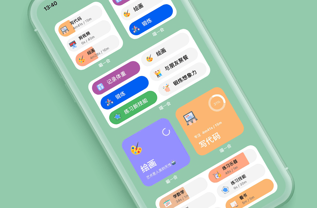 专注动画:13个专注动画适配不同的场景(学习、工作、生活),让你更加沉浸的专注当下正在做的事。