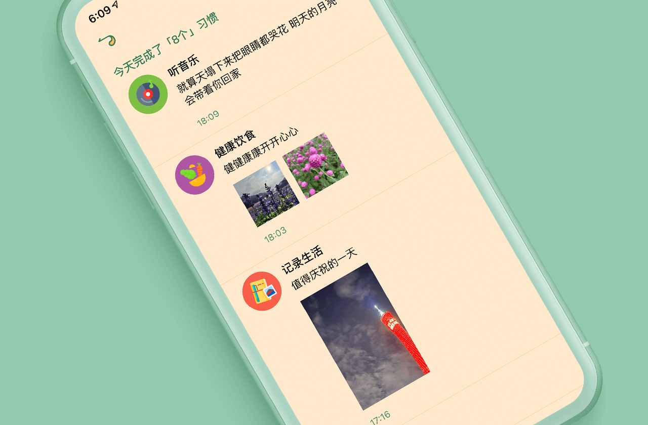 今日习惯完成情况:习惯首页手势下拉快速查看今日习惯完成情况。